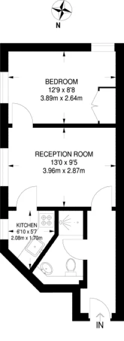 With separate fitted kitchen, reception room and fully tiled shower room.